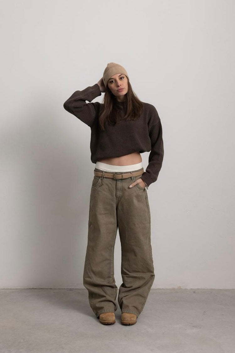 BROWN TEA "P" LINES DENIM JEANS