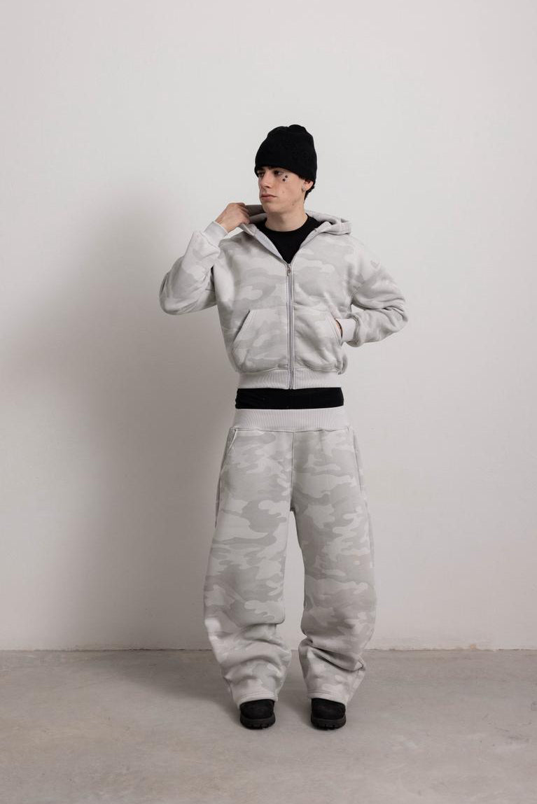 PEARL GREY CAMO ZIP HOODIE